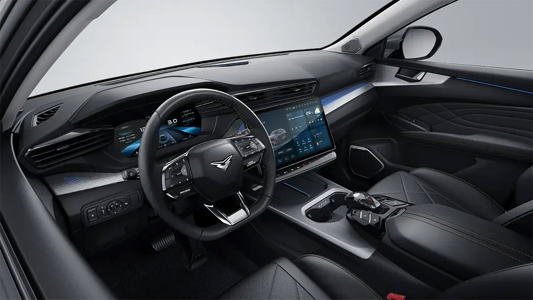 - Декоративная отделка: Черные глянцевые и хромированные вставки интерьера